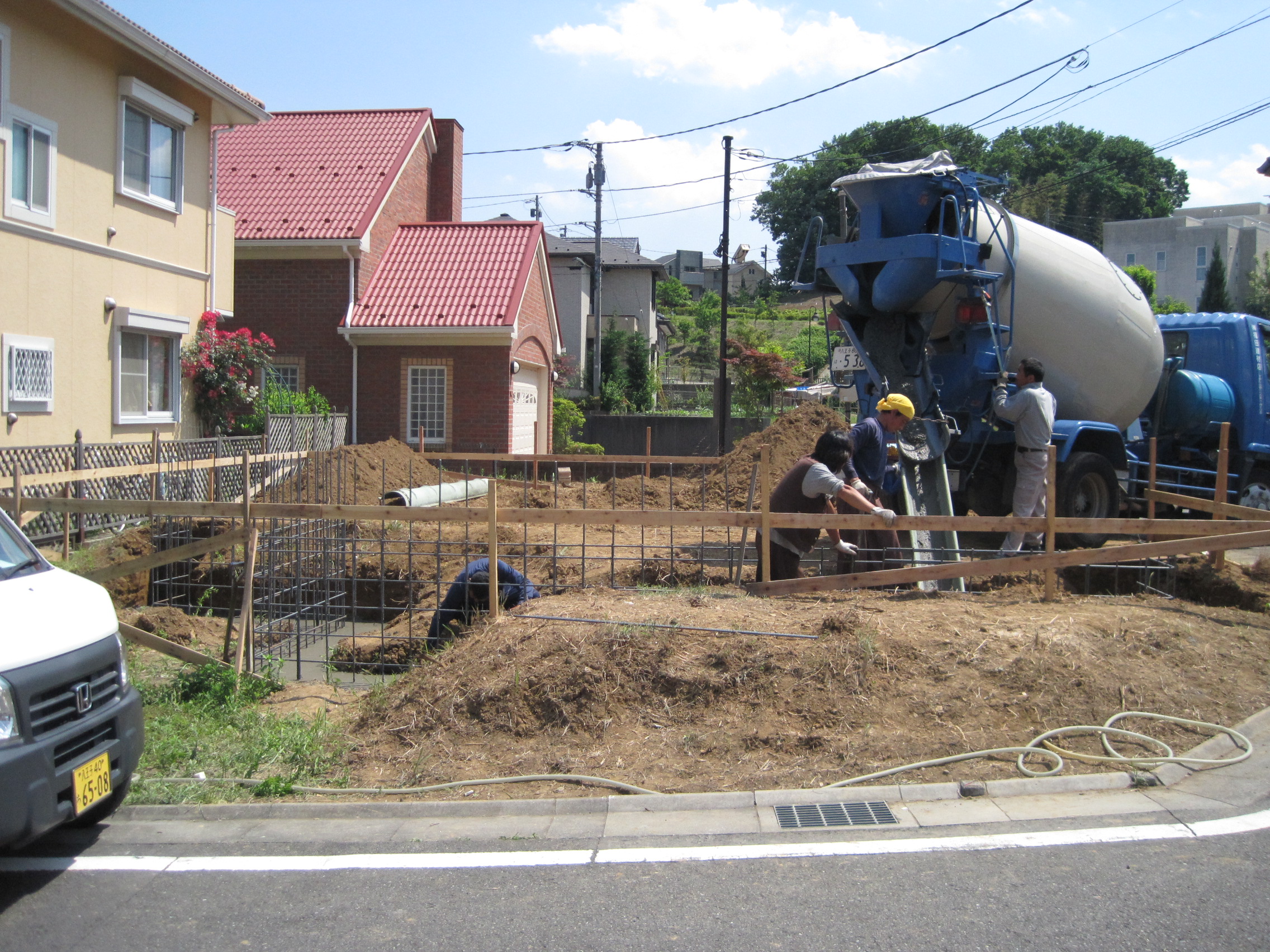 基礎工事を始めました。車庫周りの深基礎になる部分の工事です。