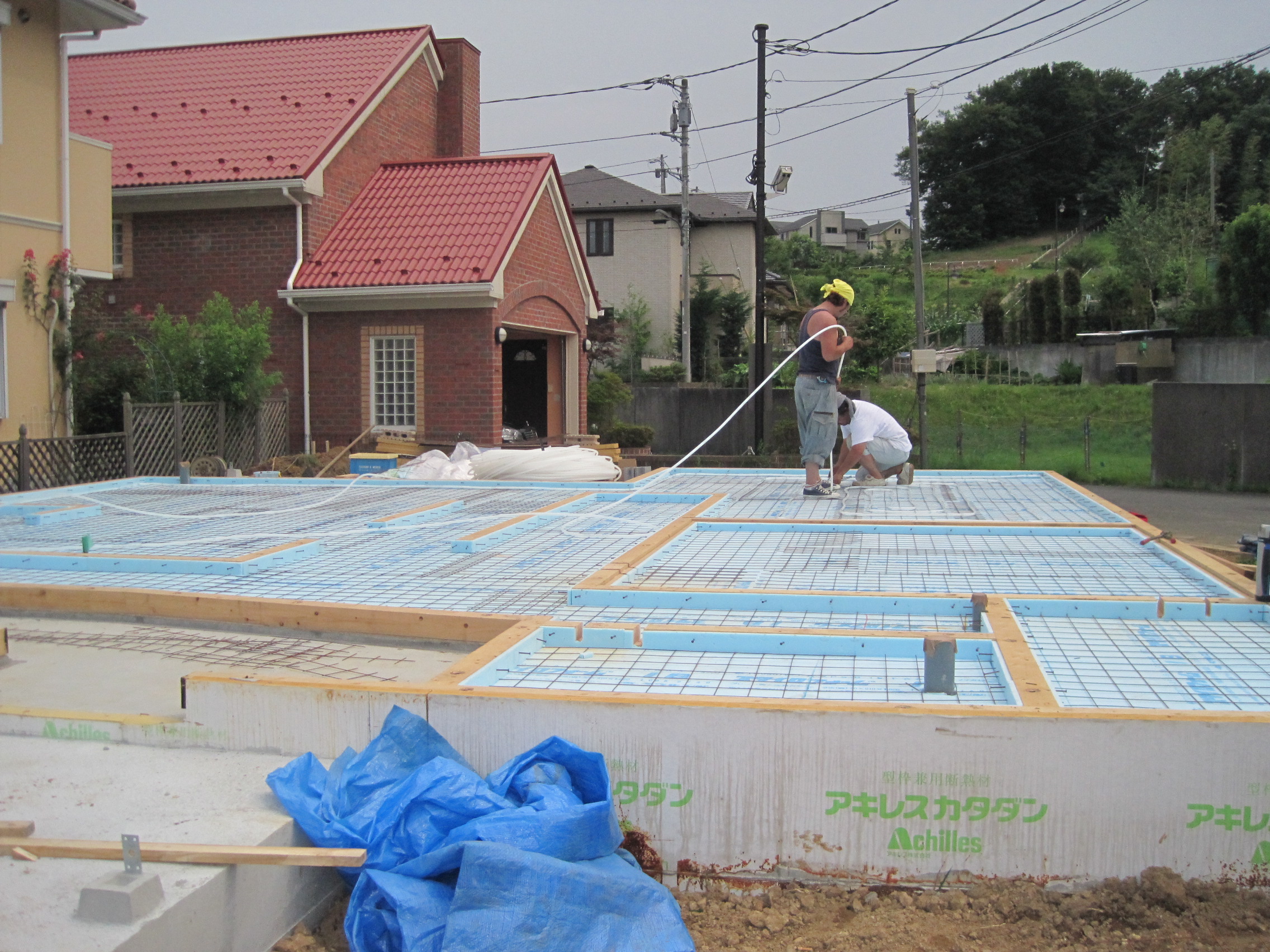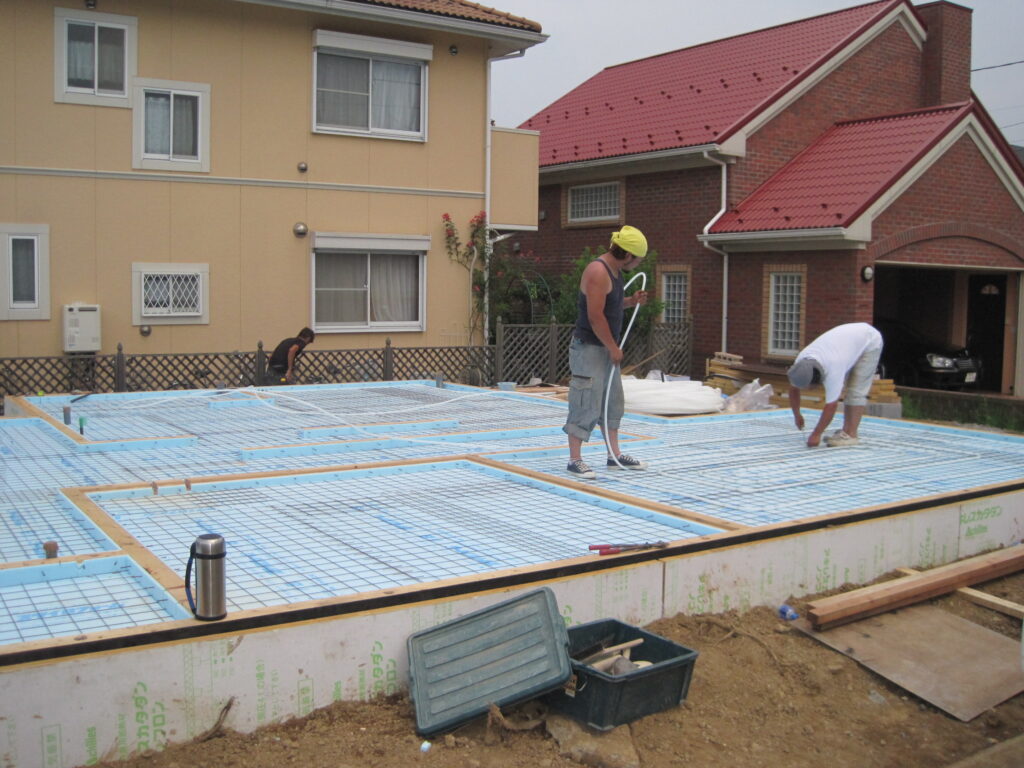 蓄熱式床暖房、床涼房の配管工事を行っています。