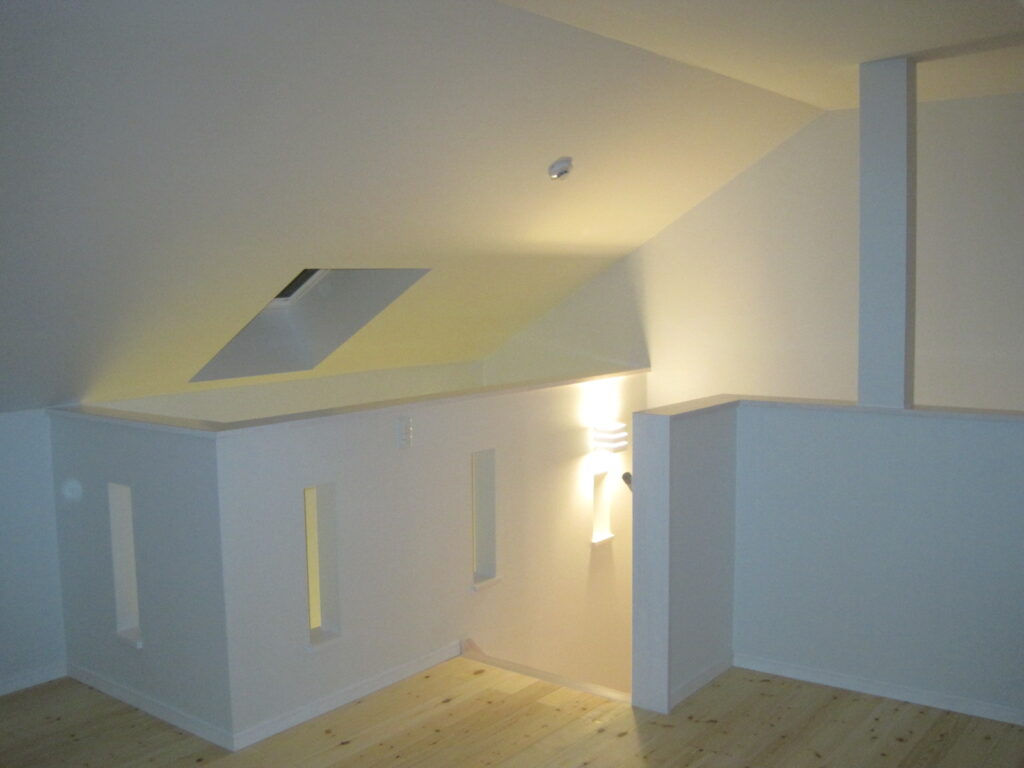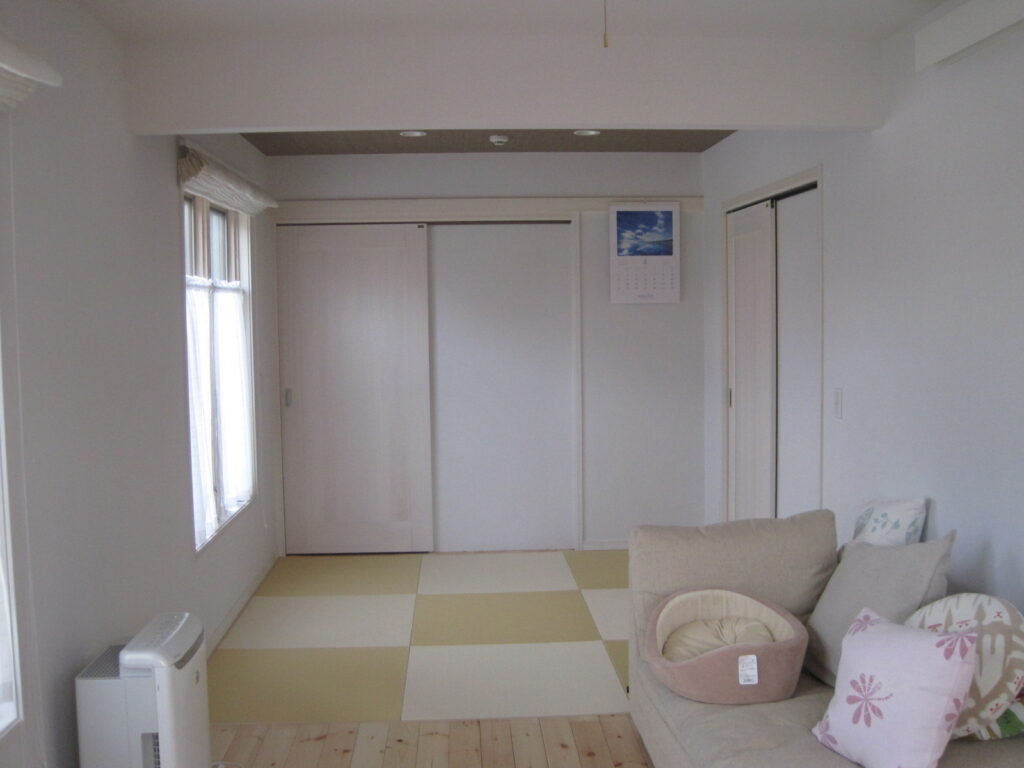 室内壁にドイツのウッドチップ壁紙「オガファーザー」を使用しました。