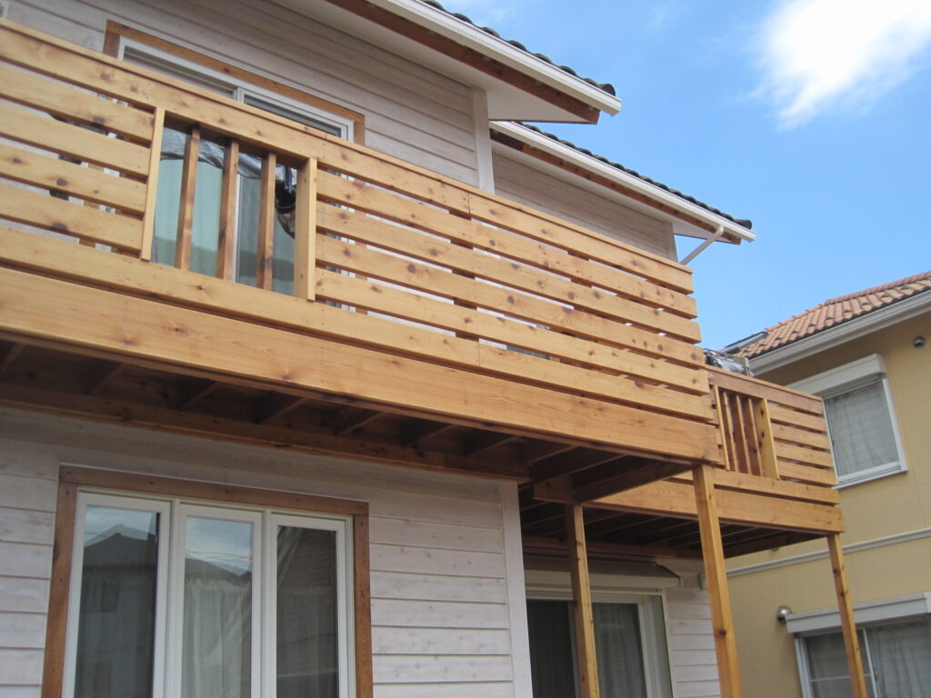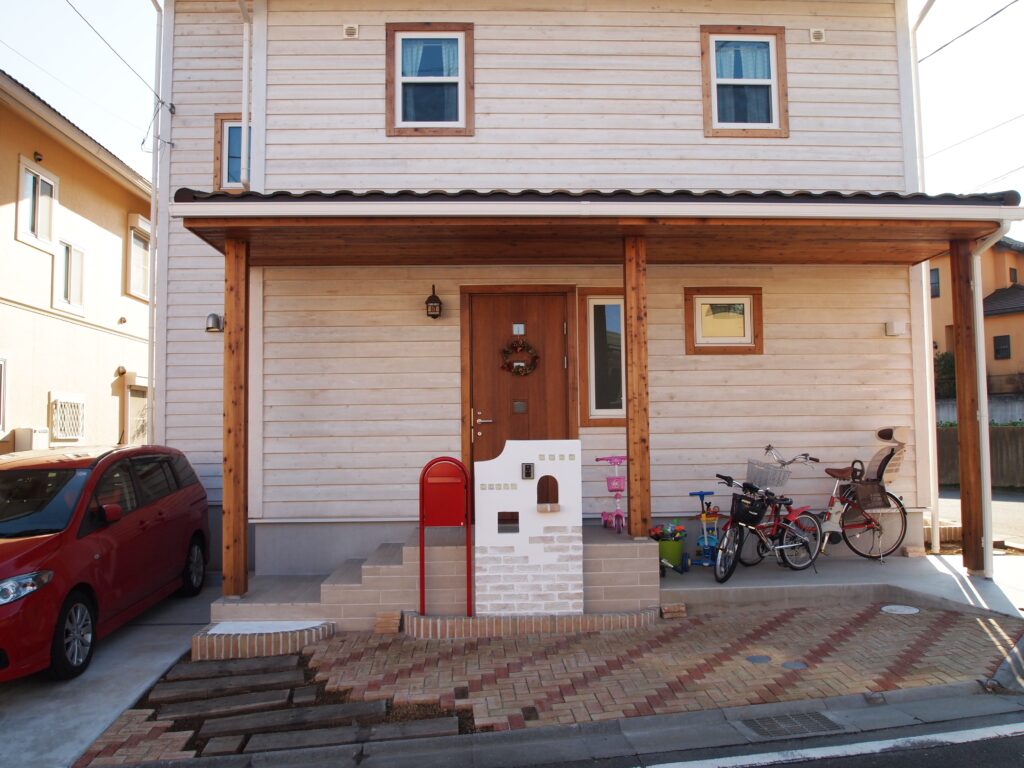 木製サイディングにオスモ自然塗料を塗りました。ワイルドですが、かわいい表情も醸し出ています。