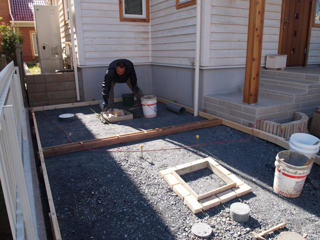 外構工事始めました。外構工事の鉄人、上島さんです。