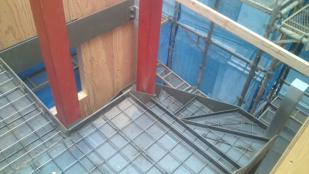 鉄骨階段設置工事を行いました。木工事との取り合い部高さもピッタリ収まりました。