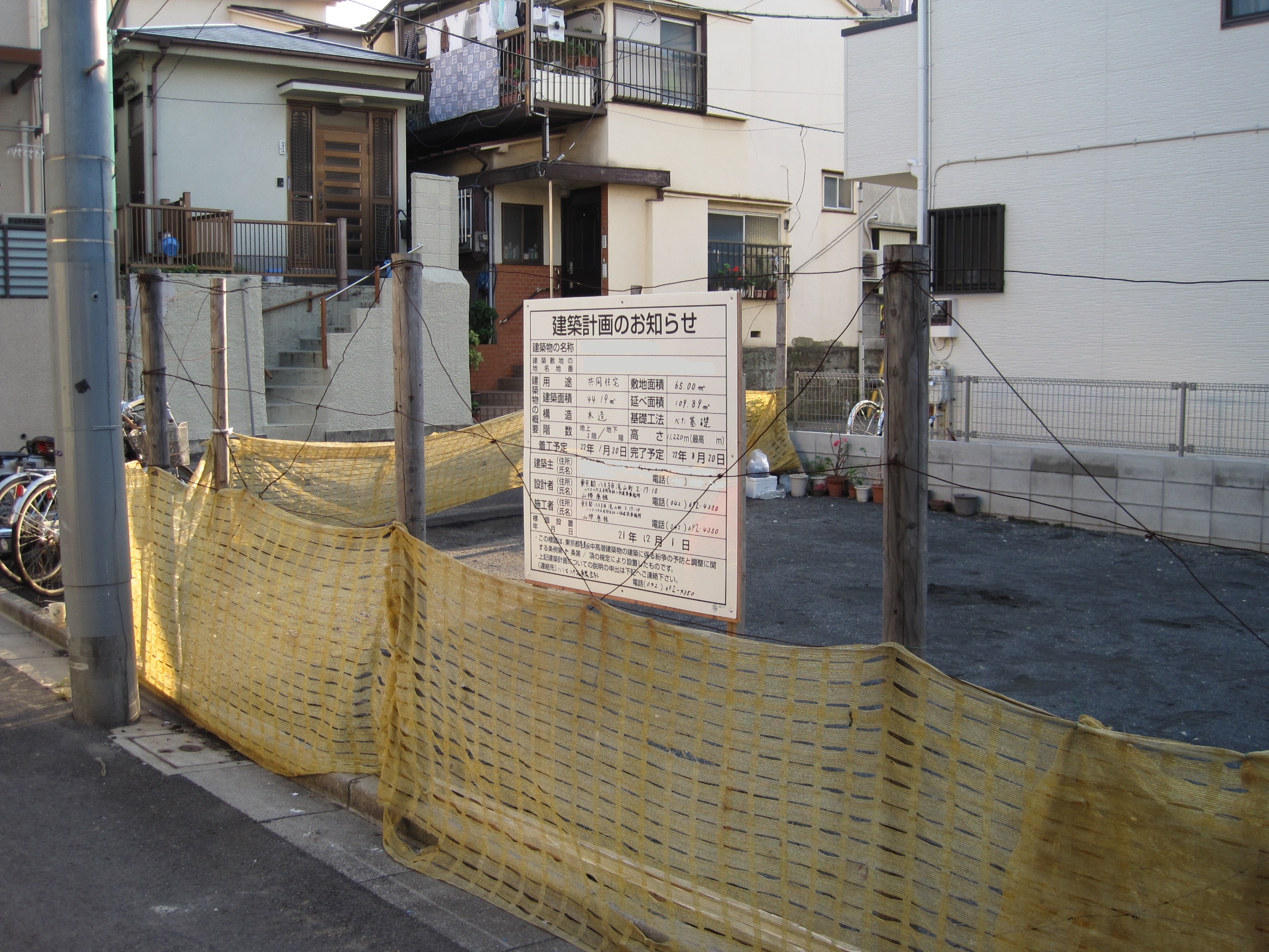 計画建物の高さが10メートルを超えるので、条例により建築計画のお知らせを設置しました。この建物は再生エネルギーを利用して快適な空間を生む、弊社の象徴的な建物の一つになるでしょう。