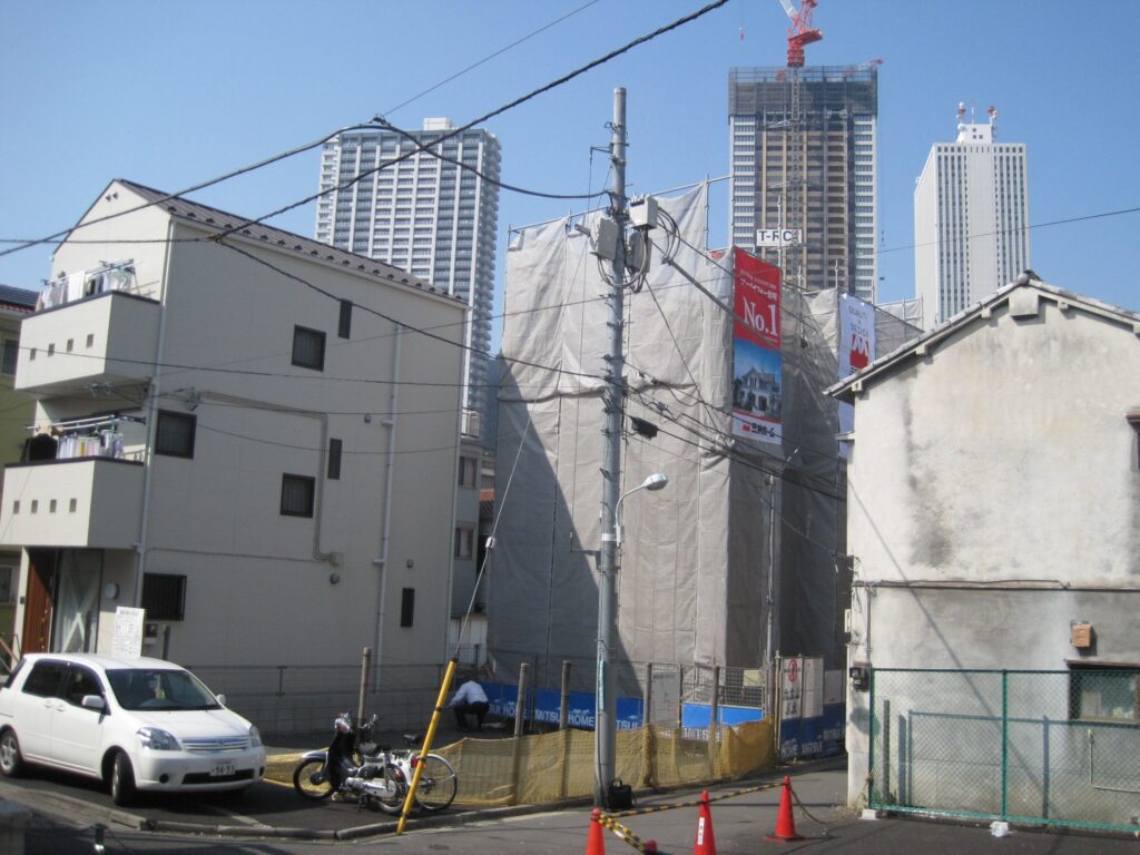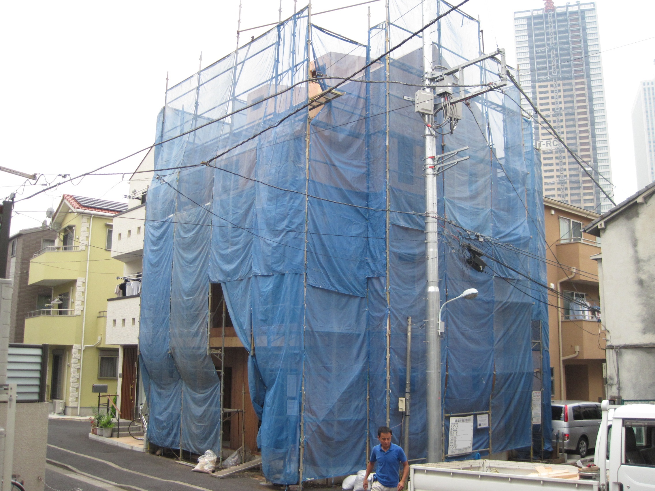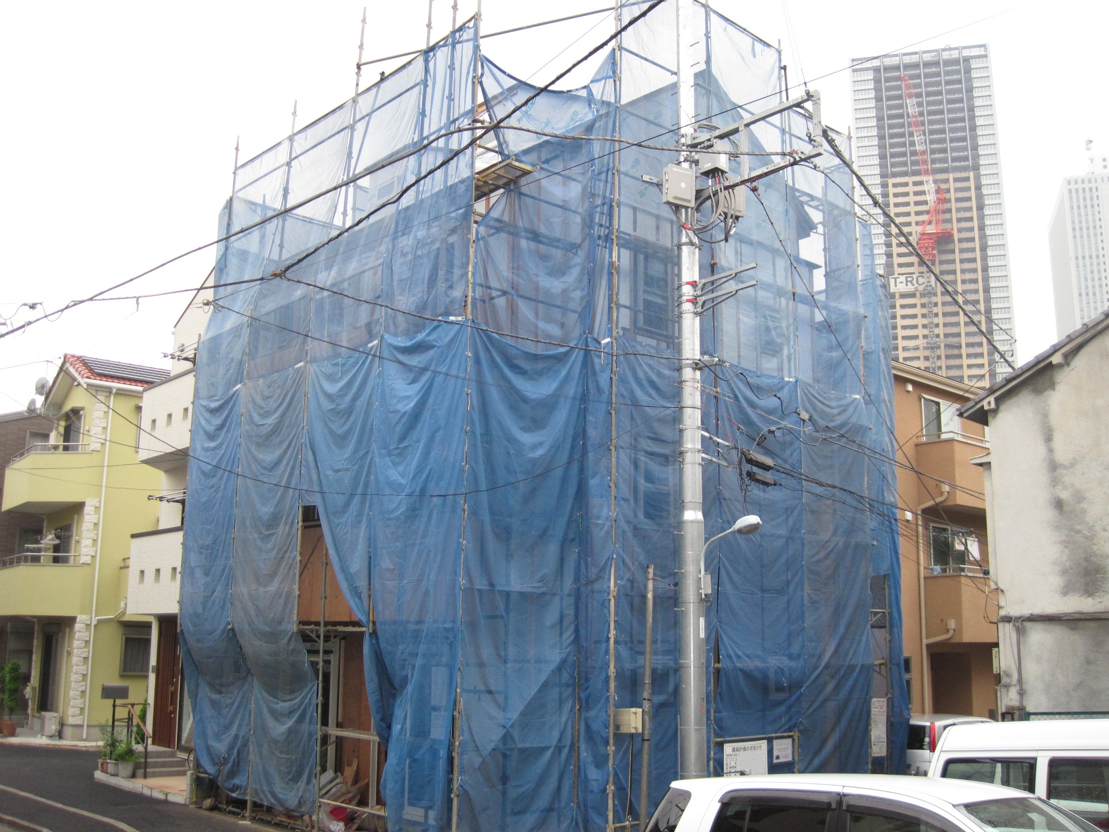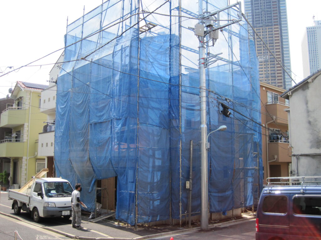 基礎工事開始に向け敷地を再調査しました。最高高さが10mを超えるシビアな建築計画となりました。
