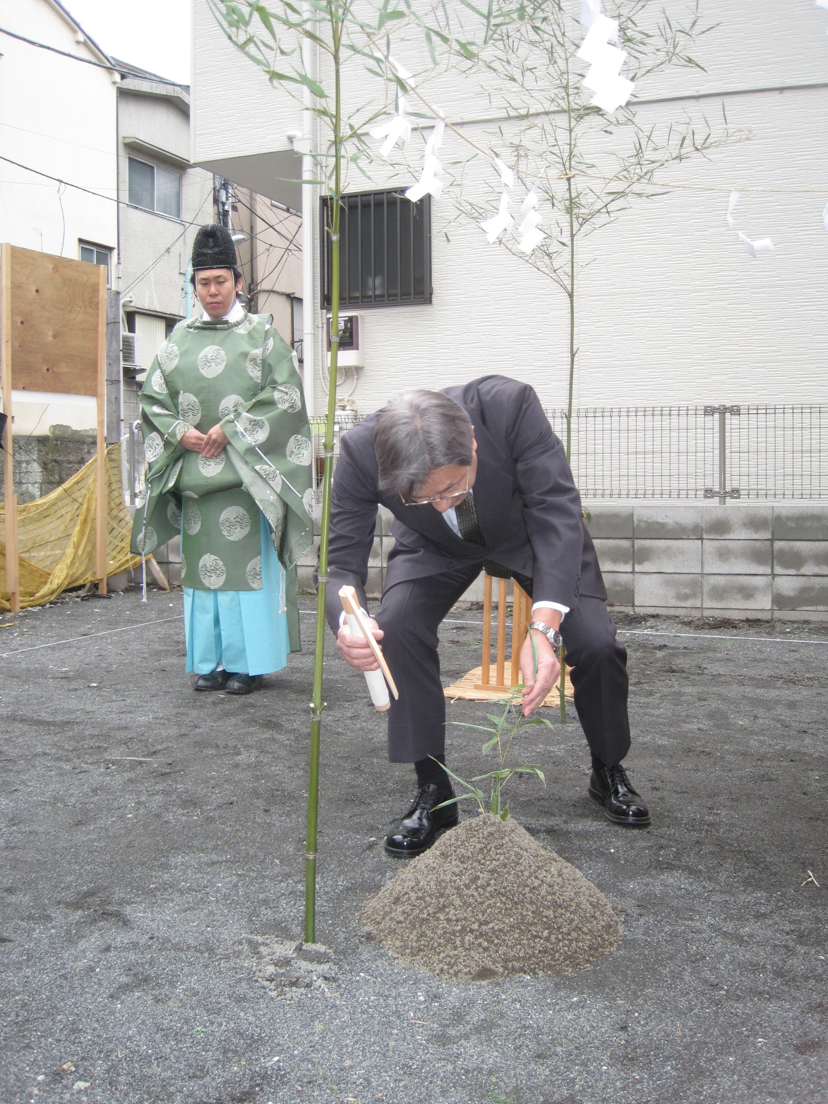 地鎮祭を執り行いました。神様が地上に降りてこられ、無事の完成をお願いしました。