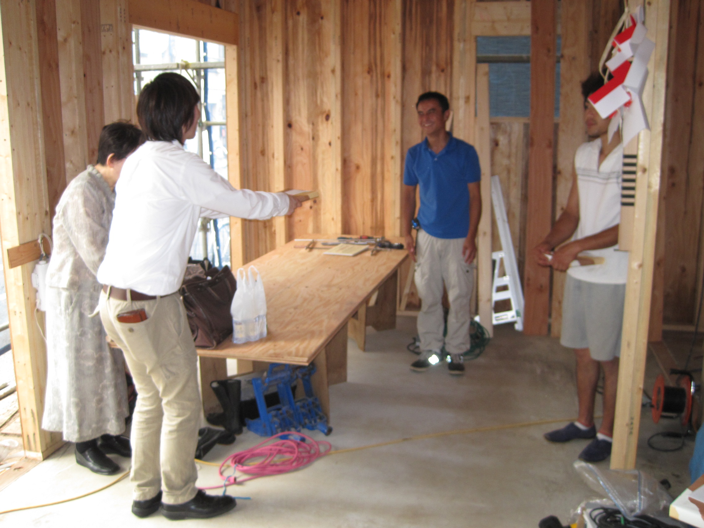 シビアな設計でしたが無事上棟しました。上棟式ではお客様から労いと喜びの言葉をいただきました。ありがとうございました。
