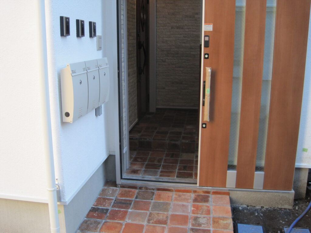 アプローチにフランス製オールドテラッコッタタイルを使用しました。