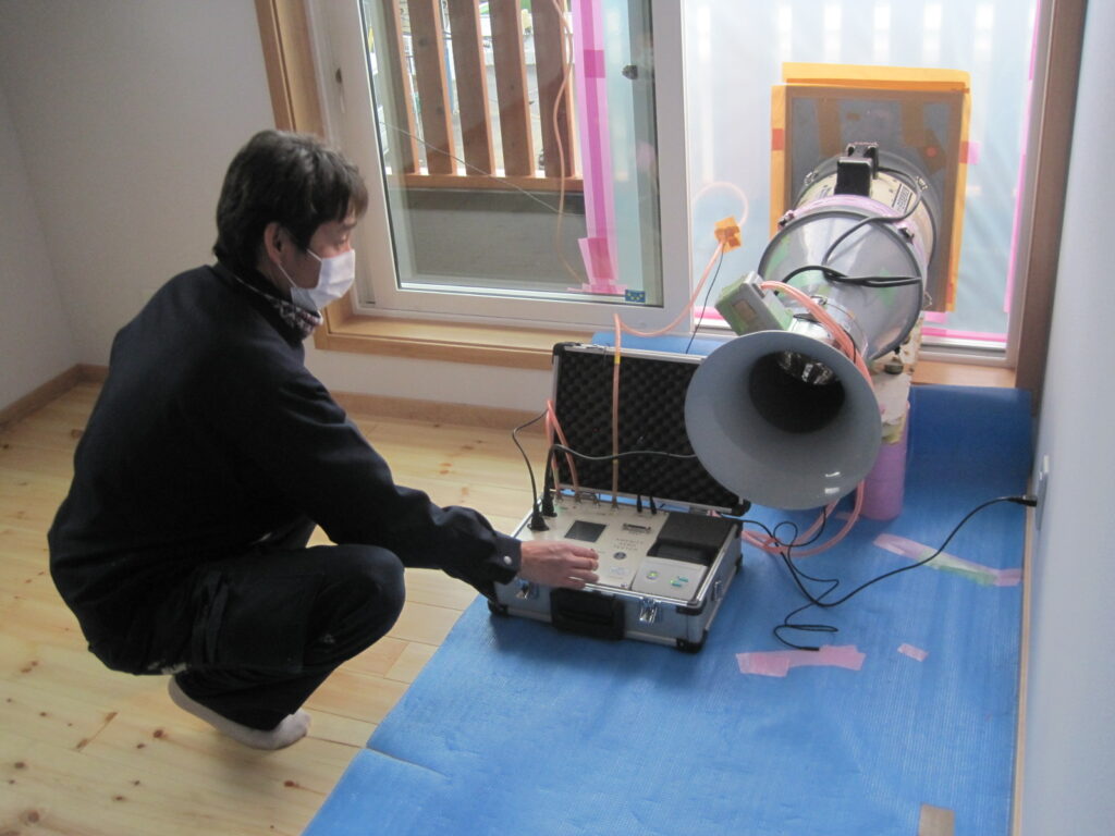 気密測定を行いました。相当隙間面積C値は0.18c㎡/㎡でした。