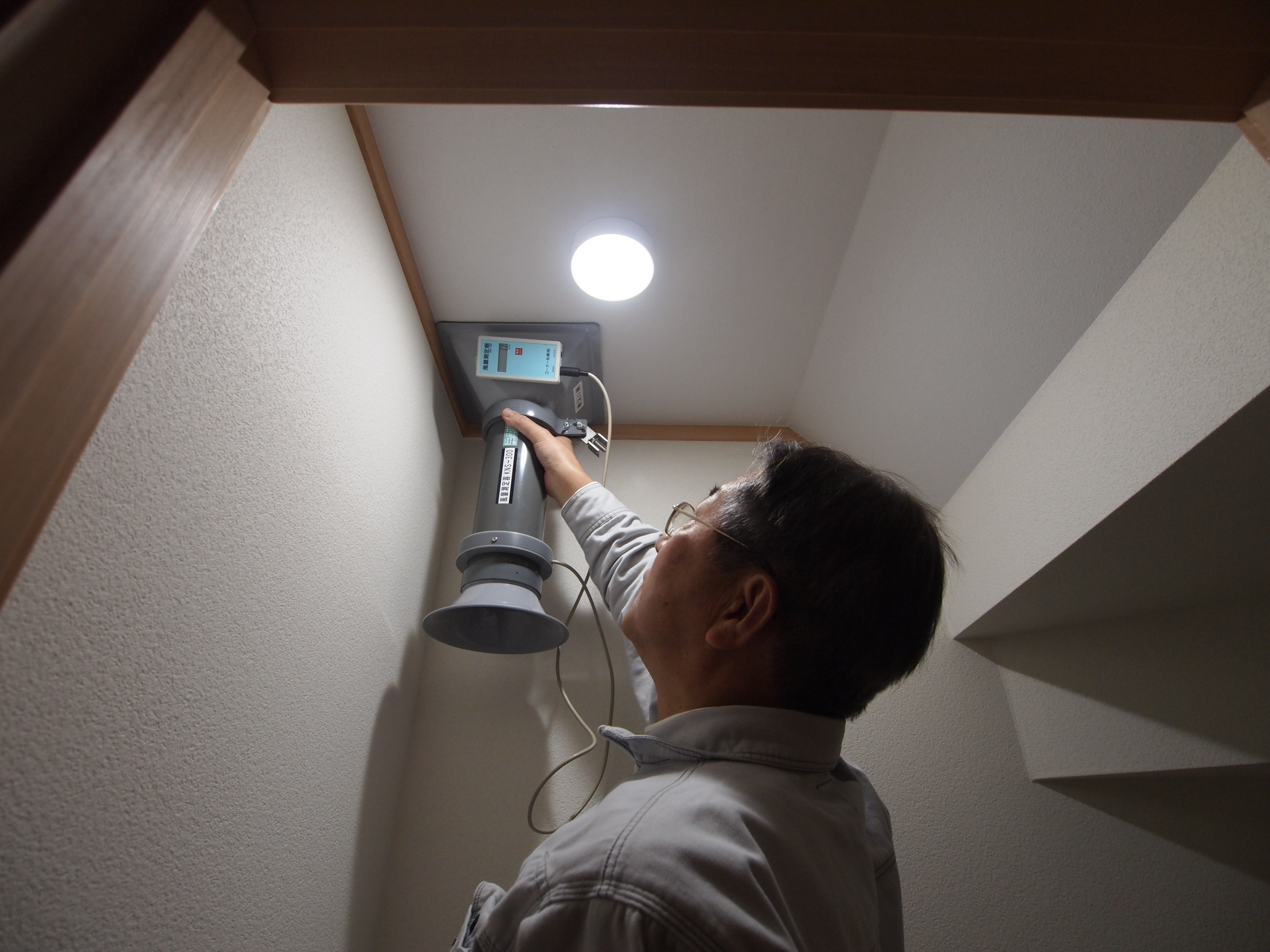 風量測定を行いました。一階トイレの排気が規定風量に足りませんでした。調整が必要です。