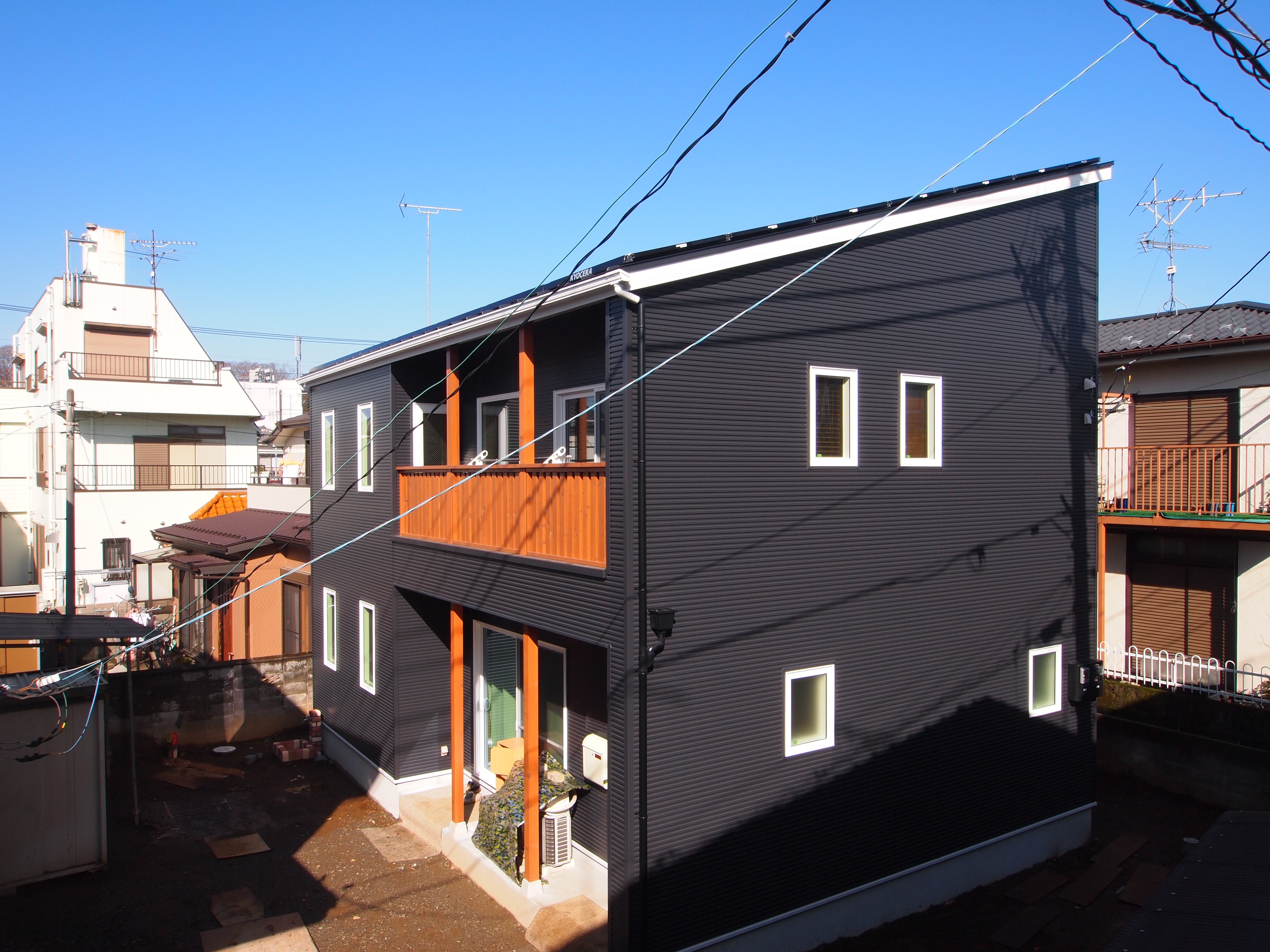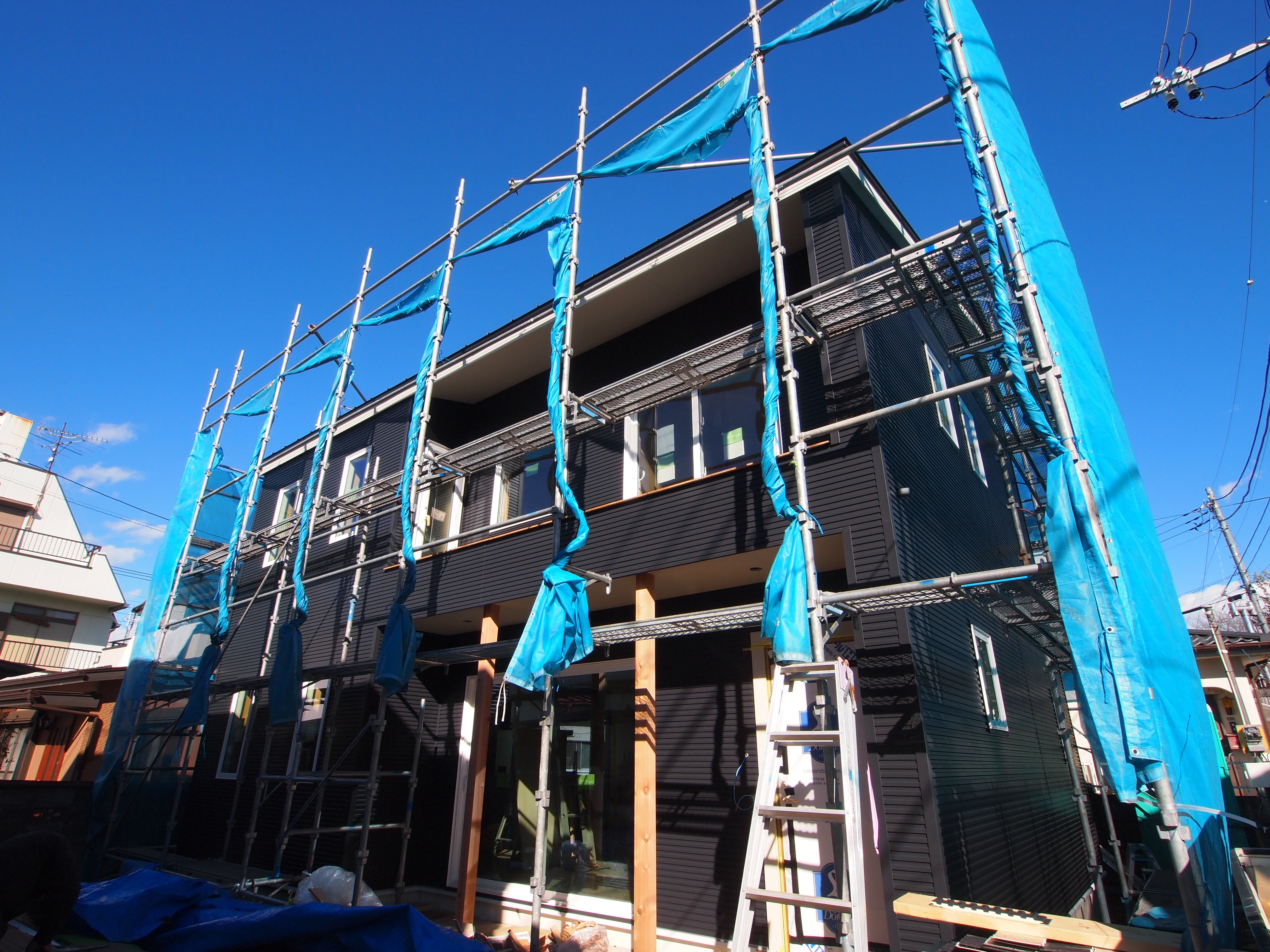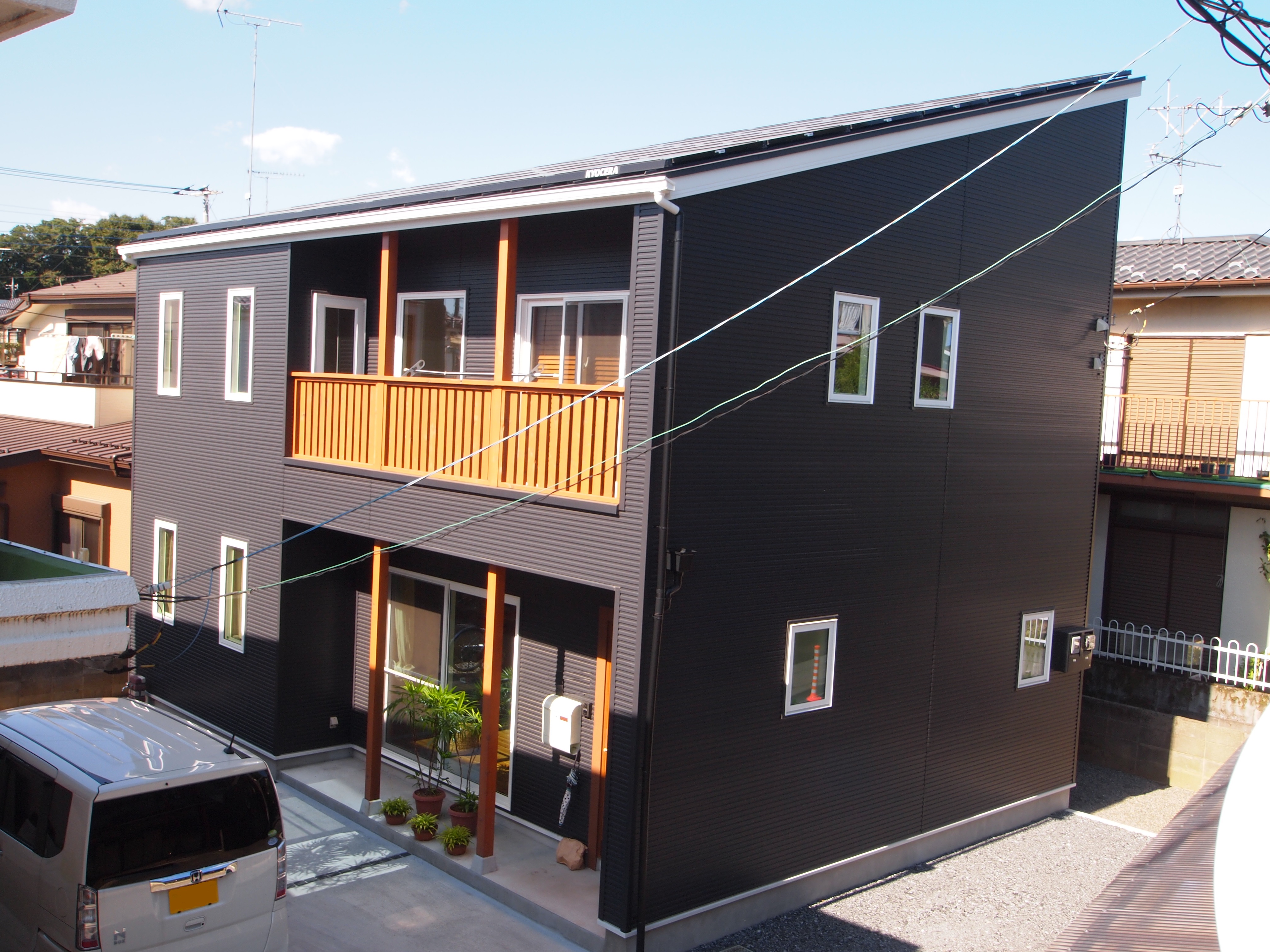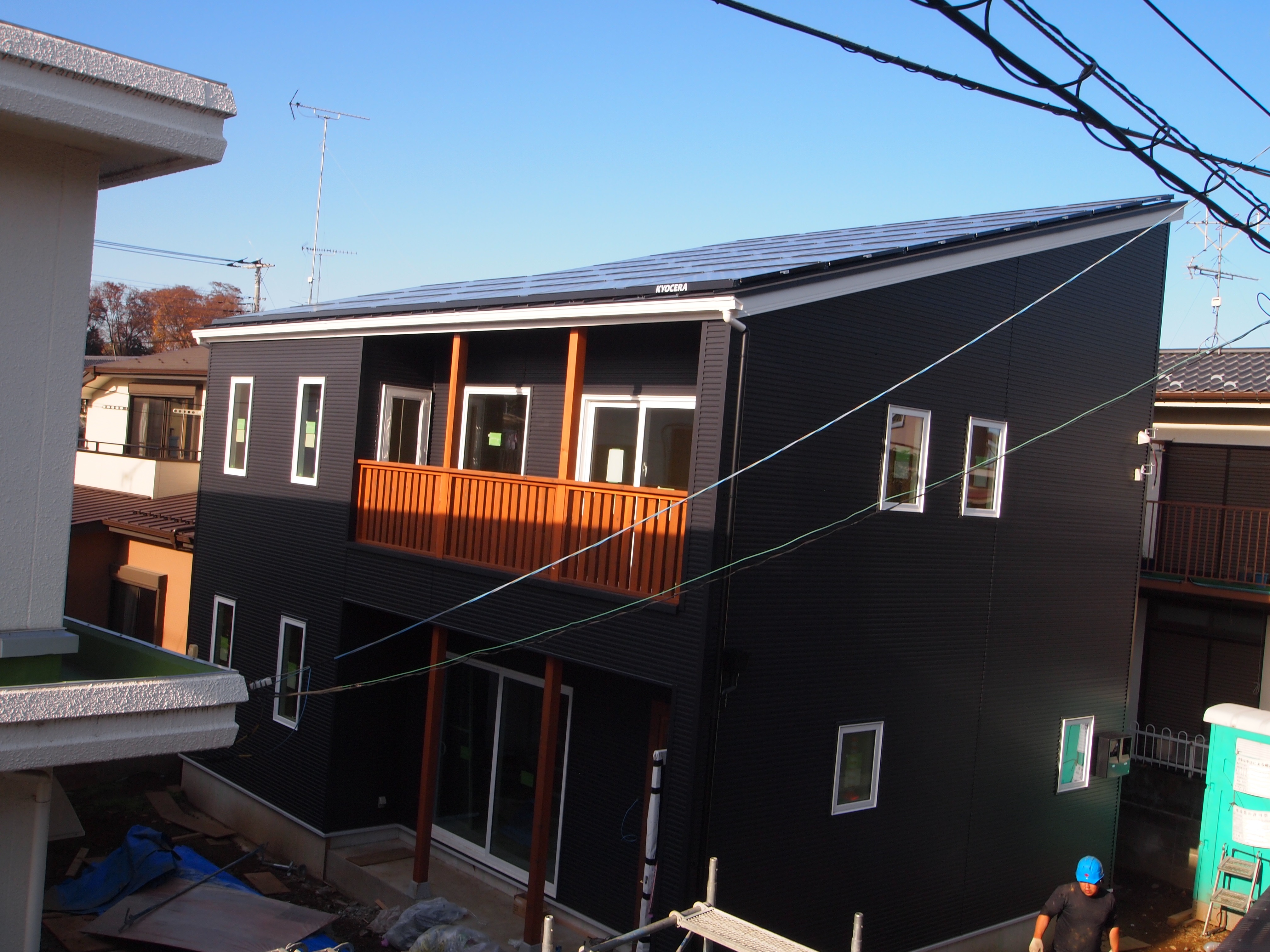 足場が外れました。京セラ太陽光パネル8.3KW搭載しています。