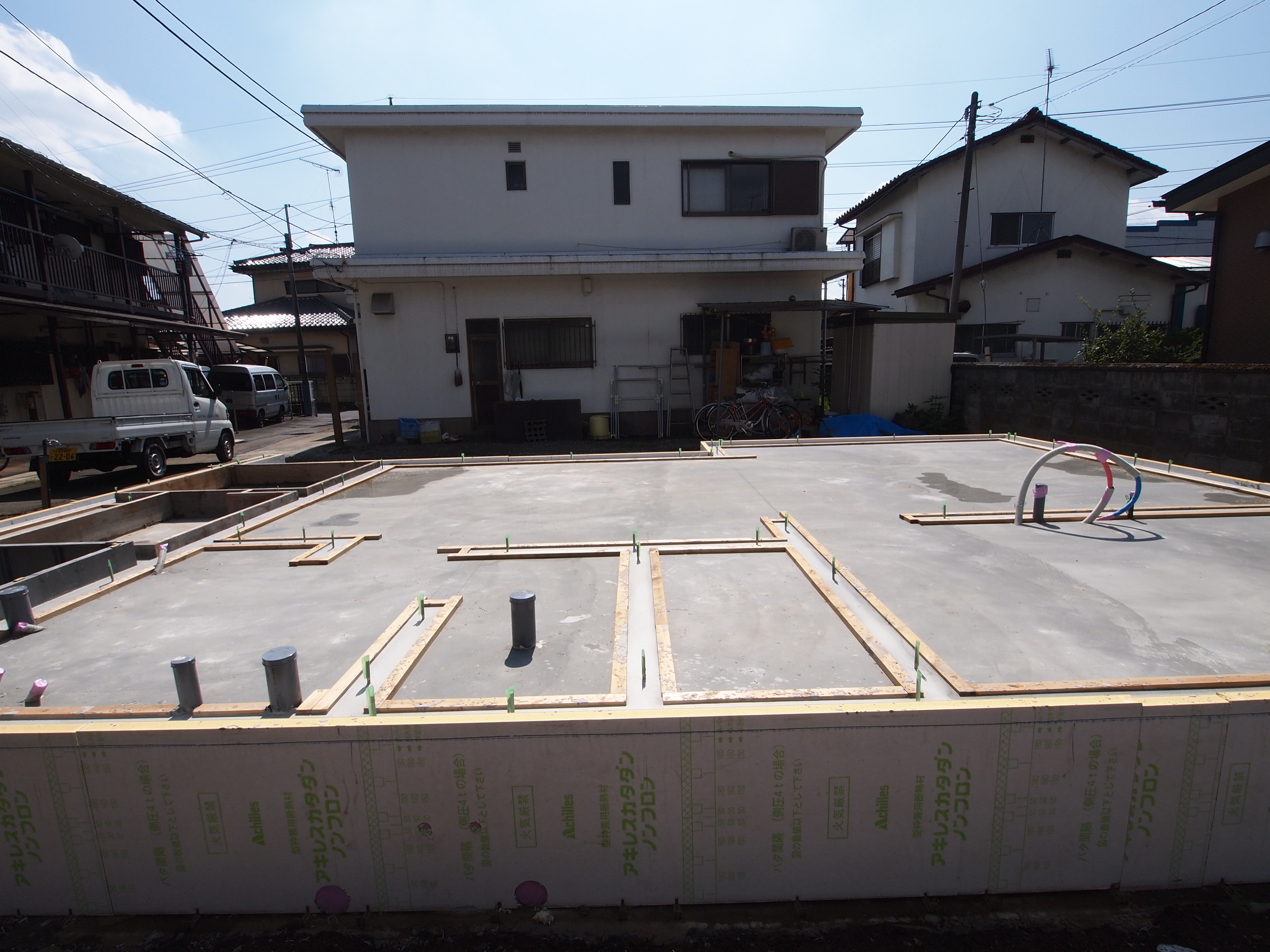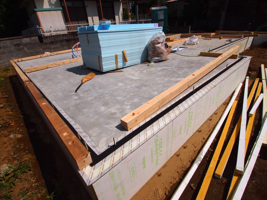 基礎工事始めました。床下空間のない土間床基礎です。