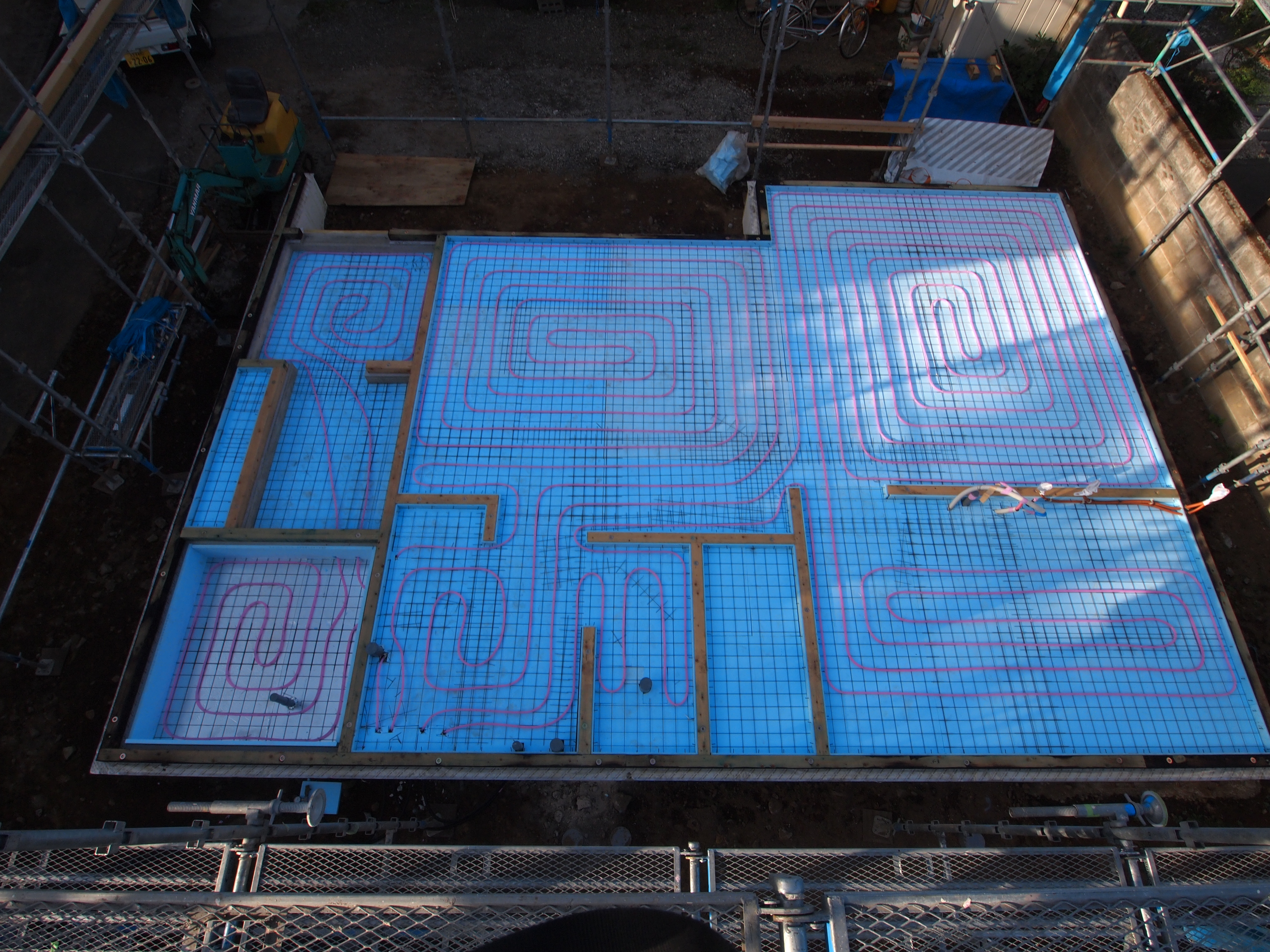 蓄熱式床暖冷房の配管完了しました。明日は蓄熱コンクリートを打設します。