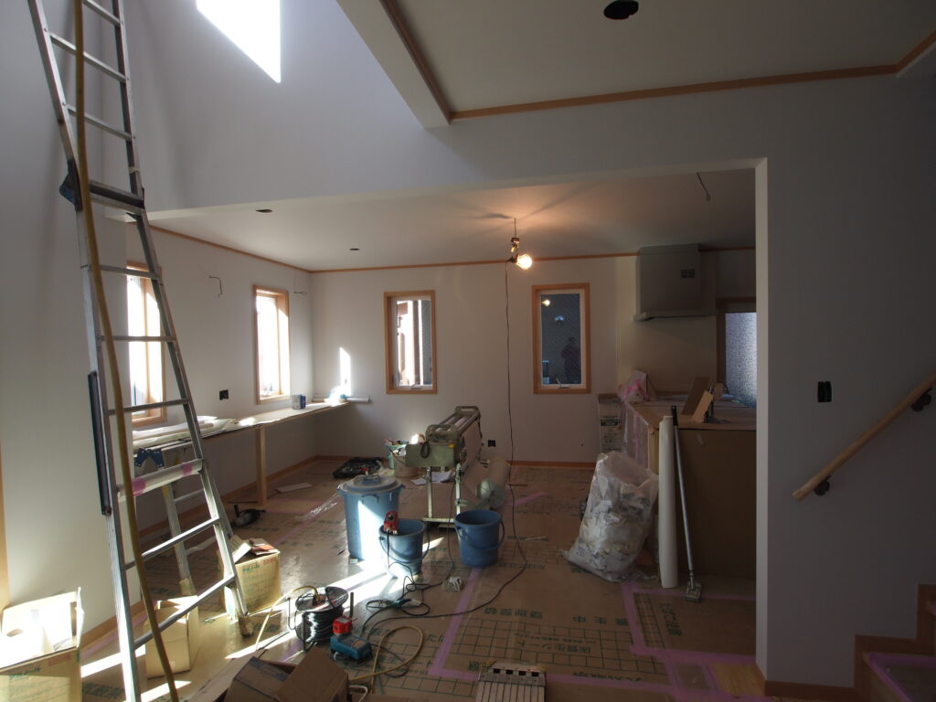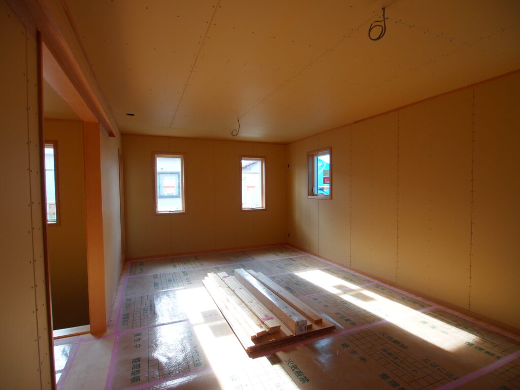 これから透湿する壁紙オガファーザーを天井と壁に施工します。