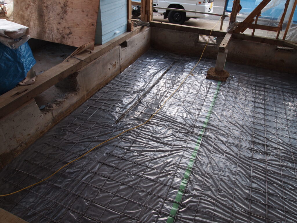 防湿コンクリートを打設し、1階床大引はすべて取り換えました。