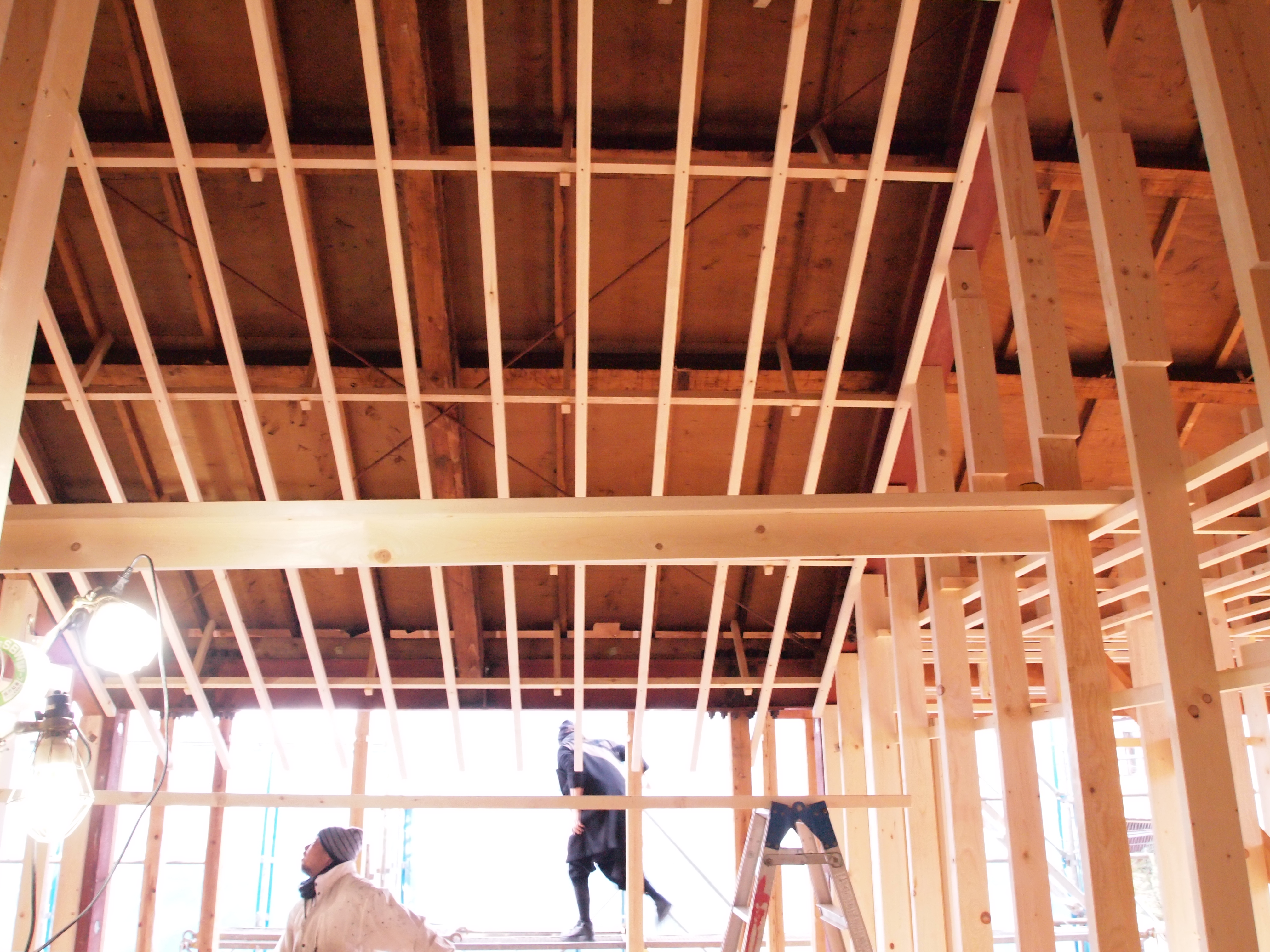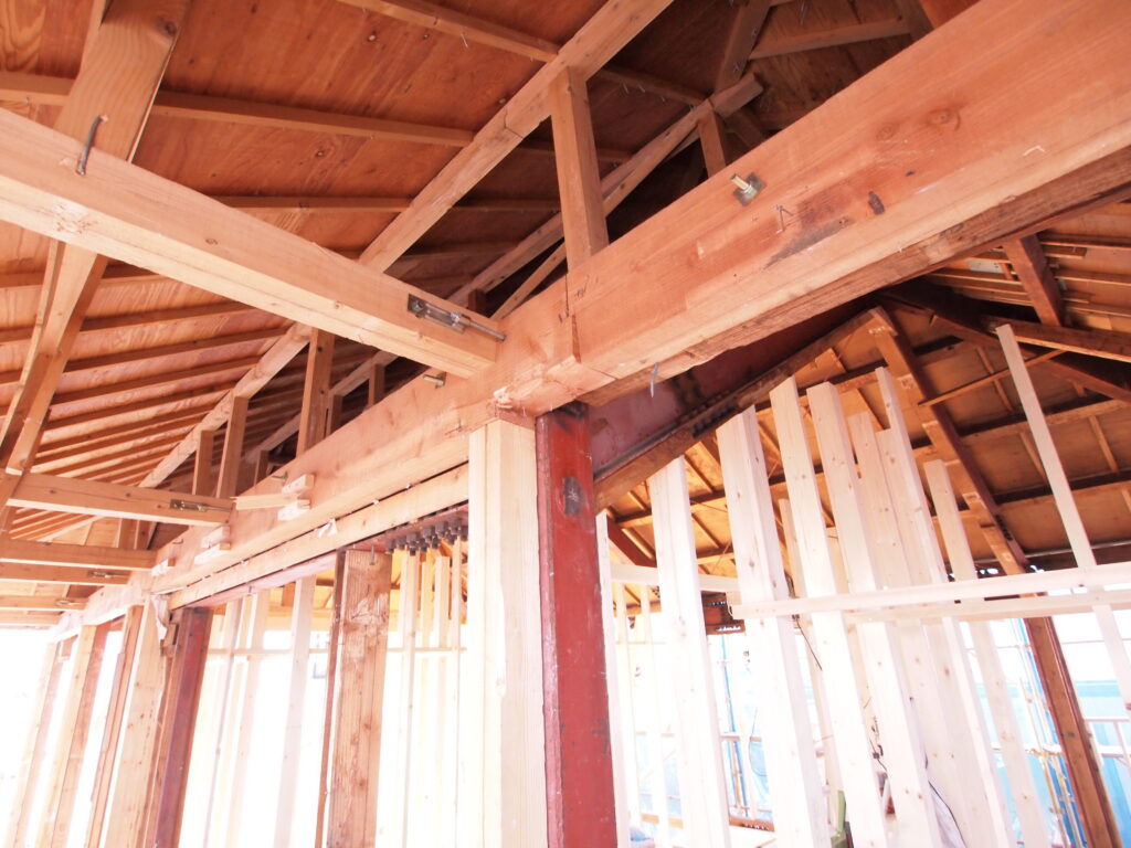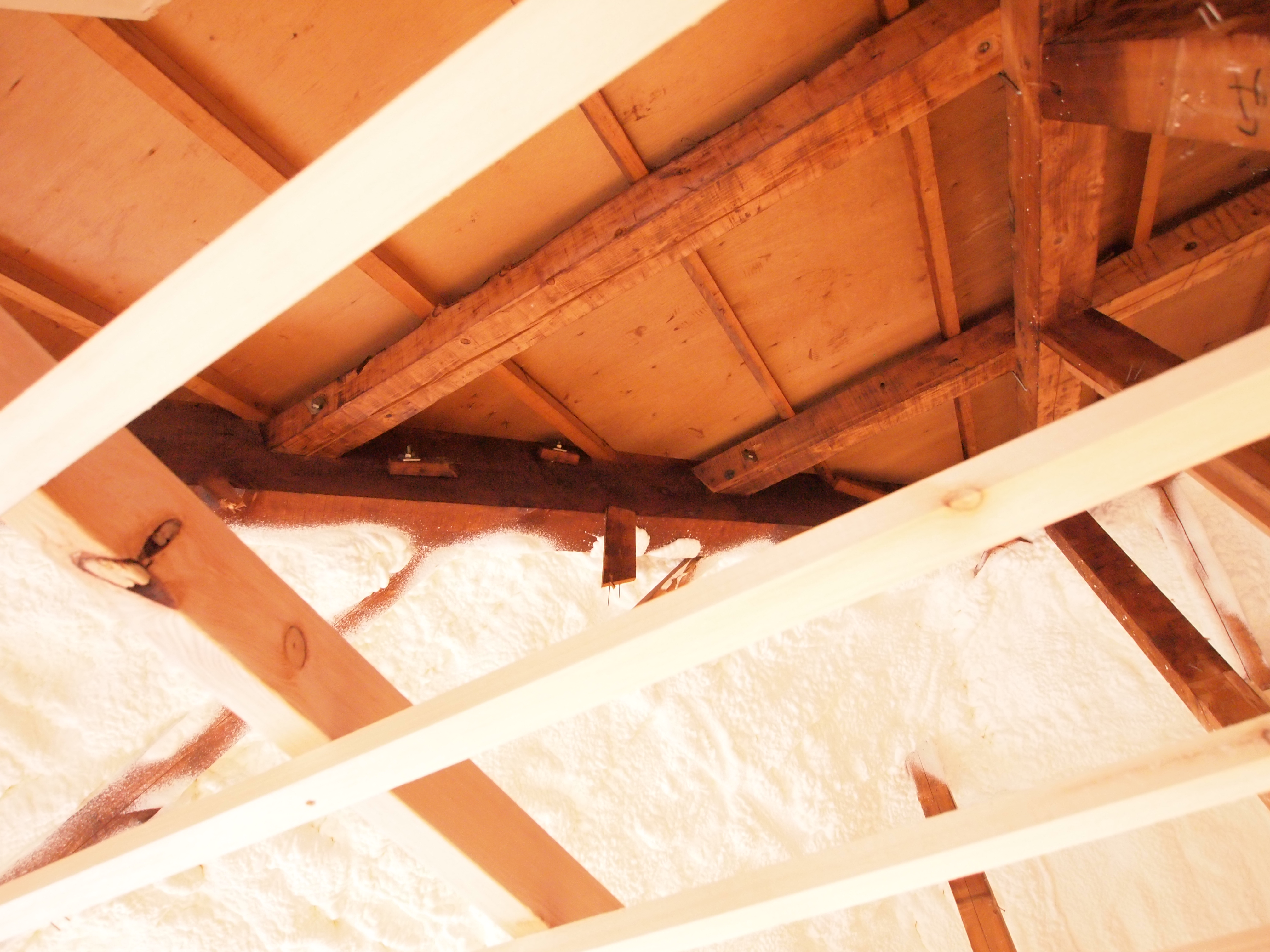古い構造材と新しい構造材がしっかりと組み合わさっています。