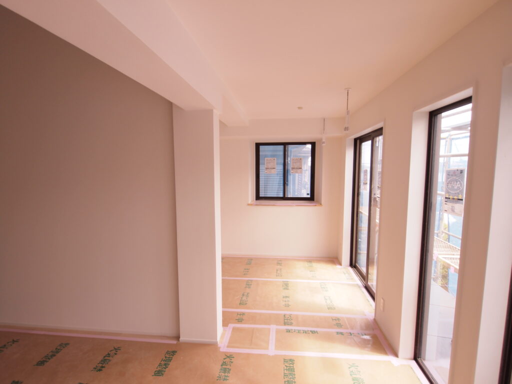 樹脂サッシYKK-AP330を取付けました。外壁にEXボードが貼られています。
