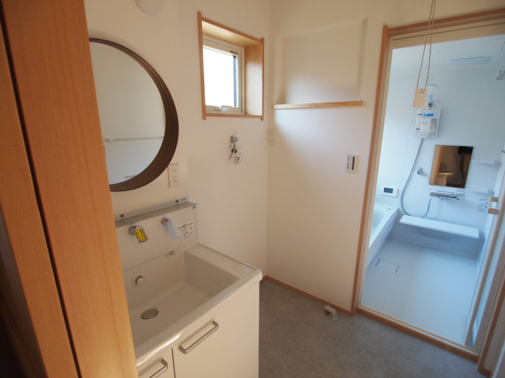 洗濯機上にニッチを設け洗剤などを置けるようにしました。