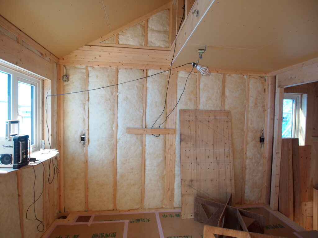 付加断熱は壁HGW16K90㎜、屋根HGW16K140㎜です。
