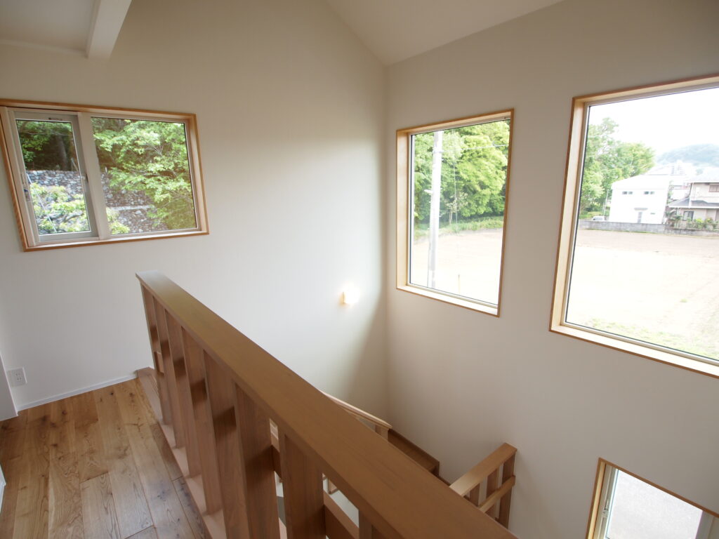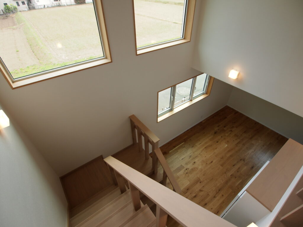 南面の吹抜け窓は外付け電動ブラインドを取り付けました。