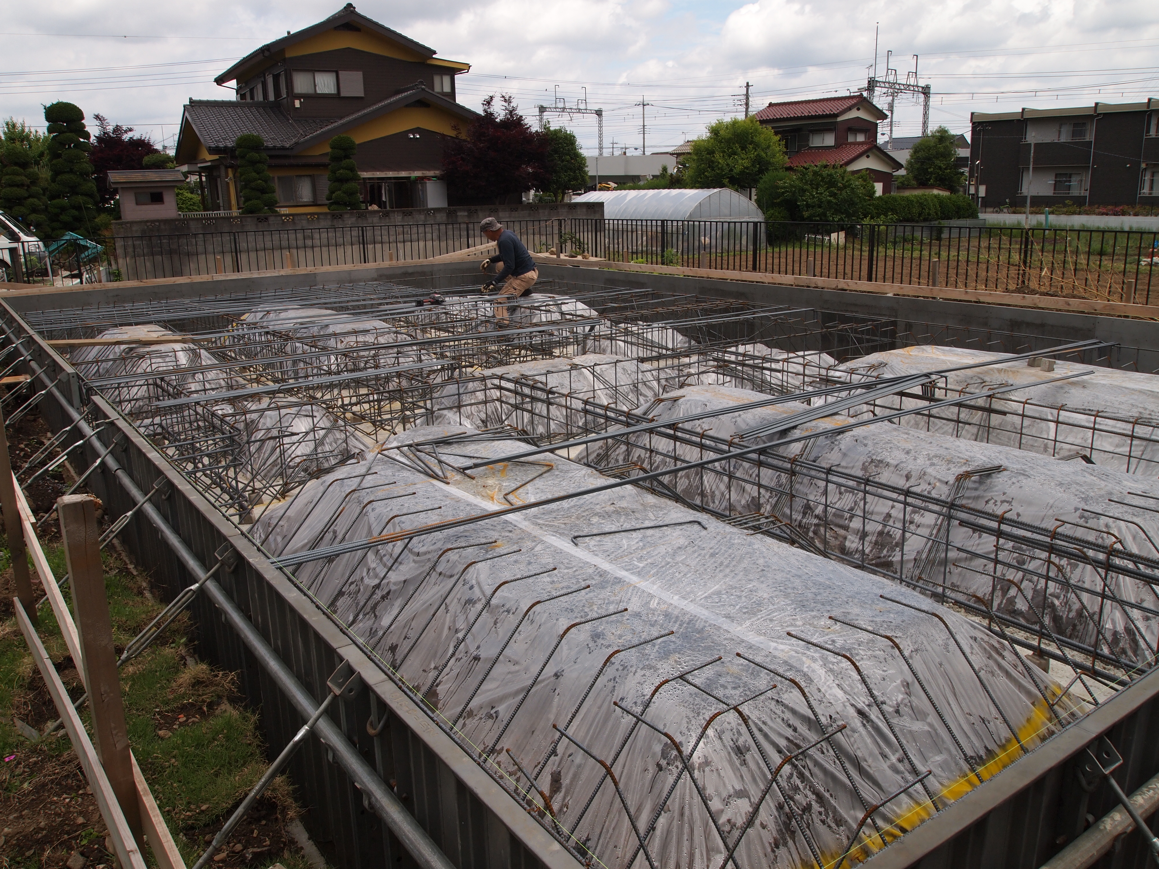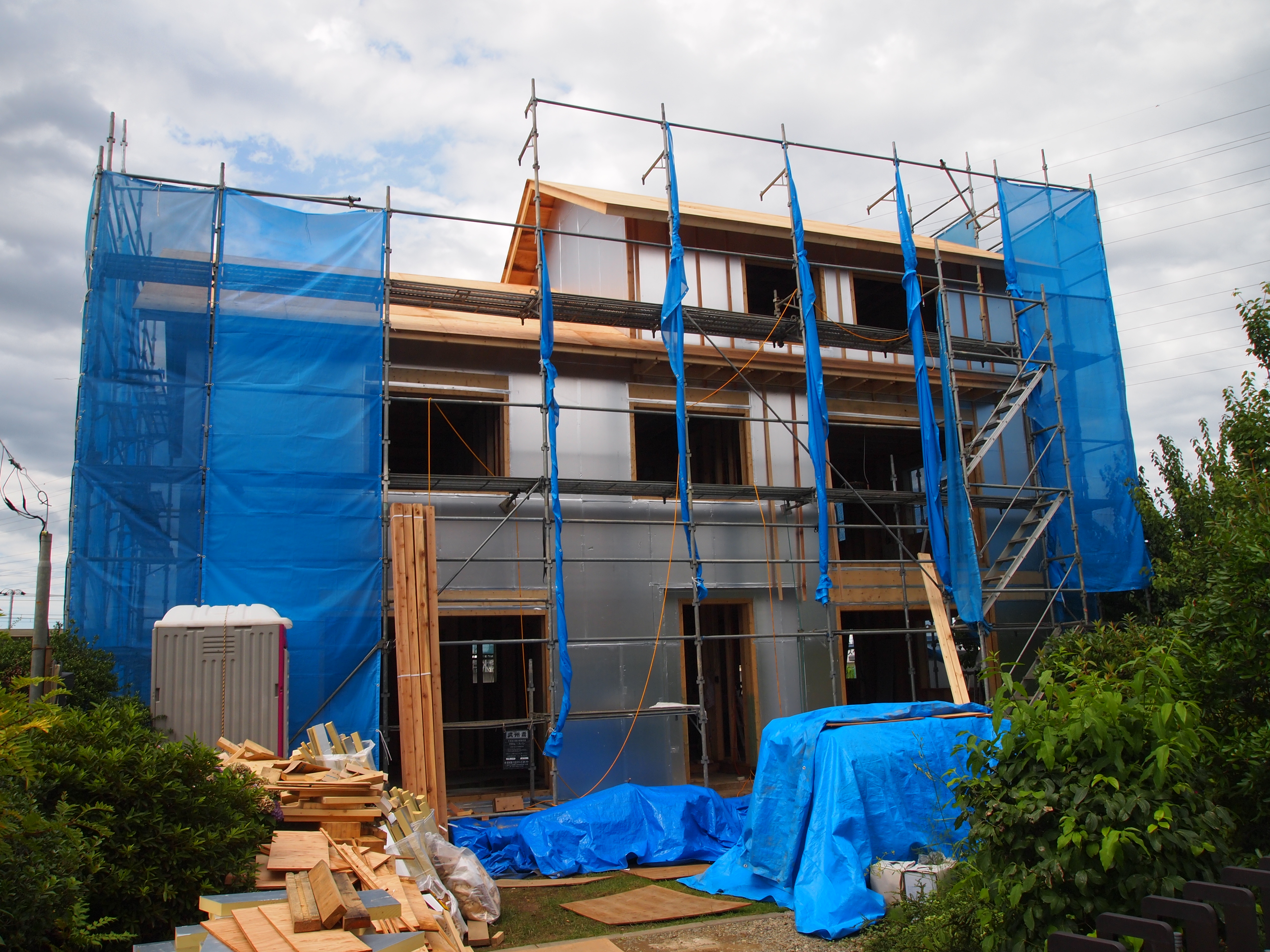 外張り断熱材Q1ボード50㎜厚を施工しています。付加断熱材は壁、屋根共アイシネン140㎜厚です。