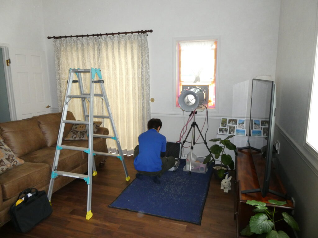 気密測定をおこないました。相当隙間面積(C値)は0.2cm2/m2(0.16cm2/m2)でした。