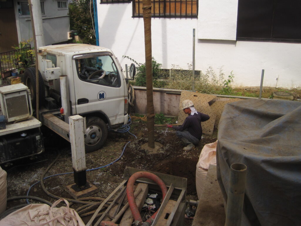 地盤改良を行いました。柱状改良500径、長さ7.0mです。