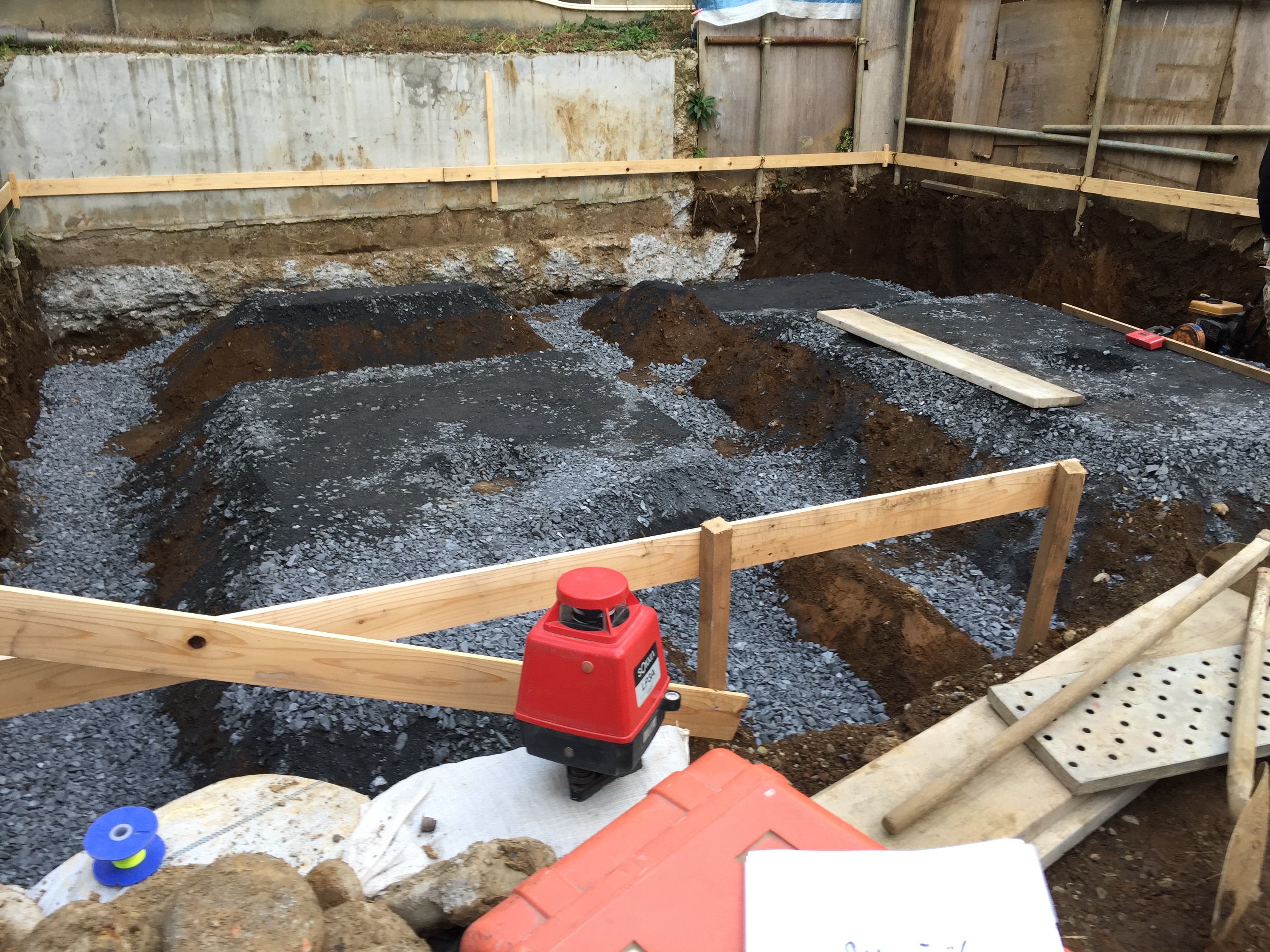 砕石を敷き込みました。
