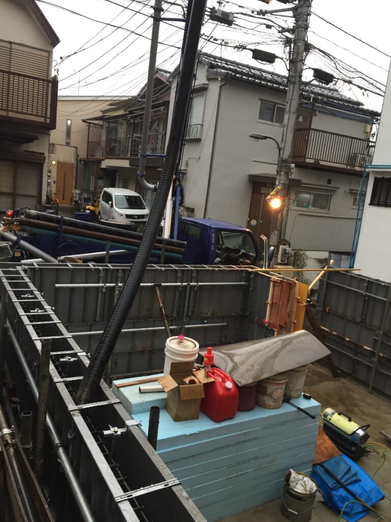 基礎立ち上がりのコンクリート打ち込みを行いました。