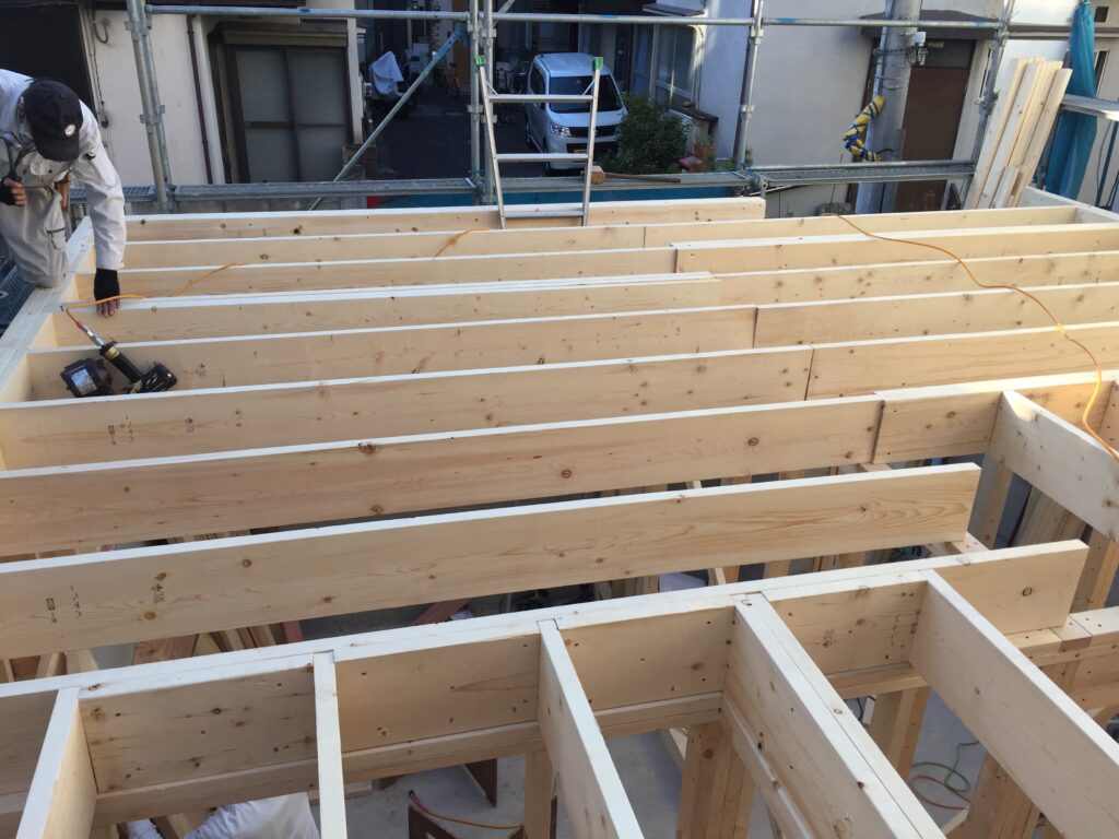 2階の床根太敷いています。