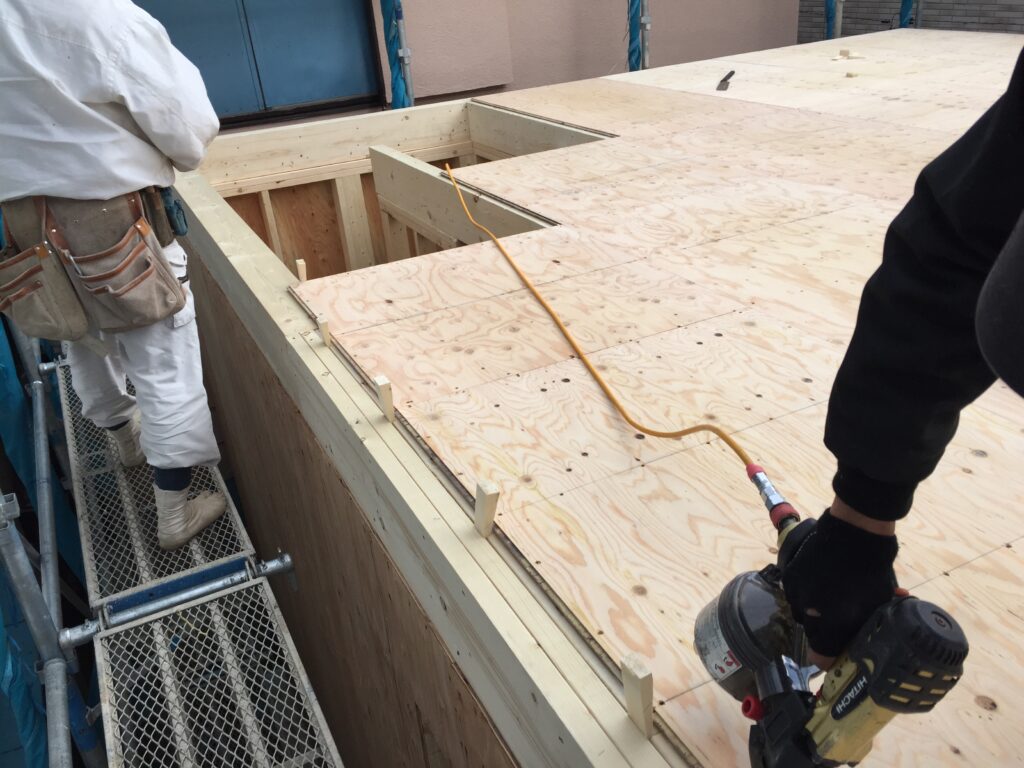 一層目の野地板を張りました。