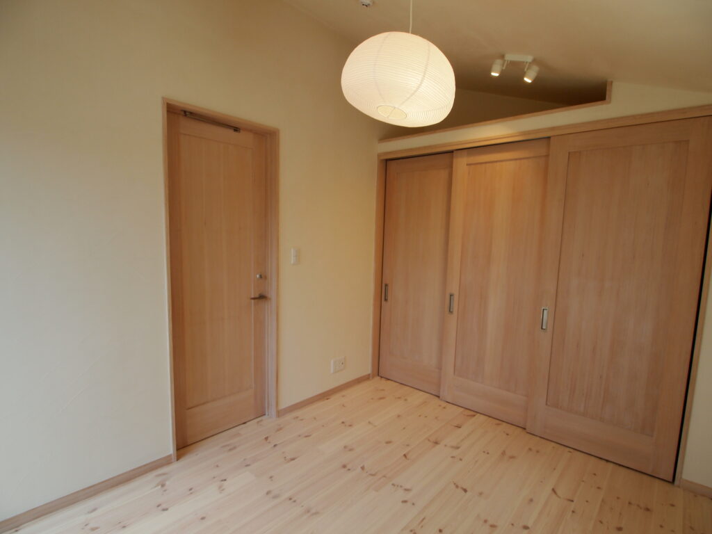 3階寝室。建具はヘム無垢材です。
